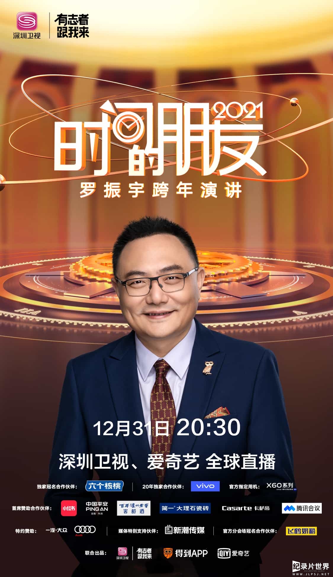 2016年12月31日20:30开始,罗振宇2016“时间的朋友”在深圳湾春茧体育馆进行跨年演讲,一共5小时。